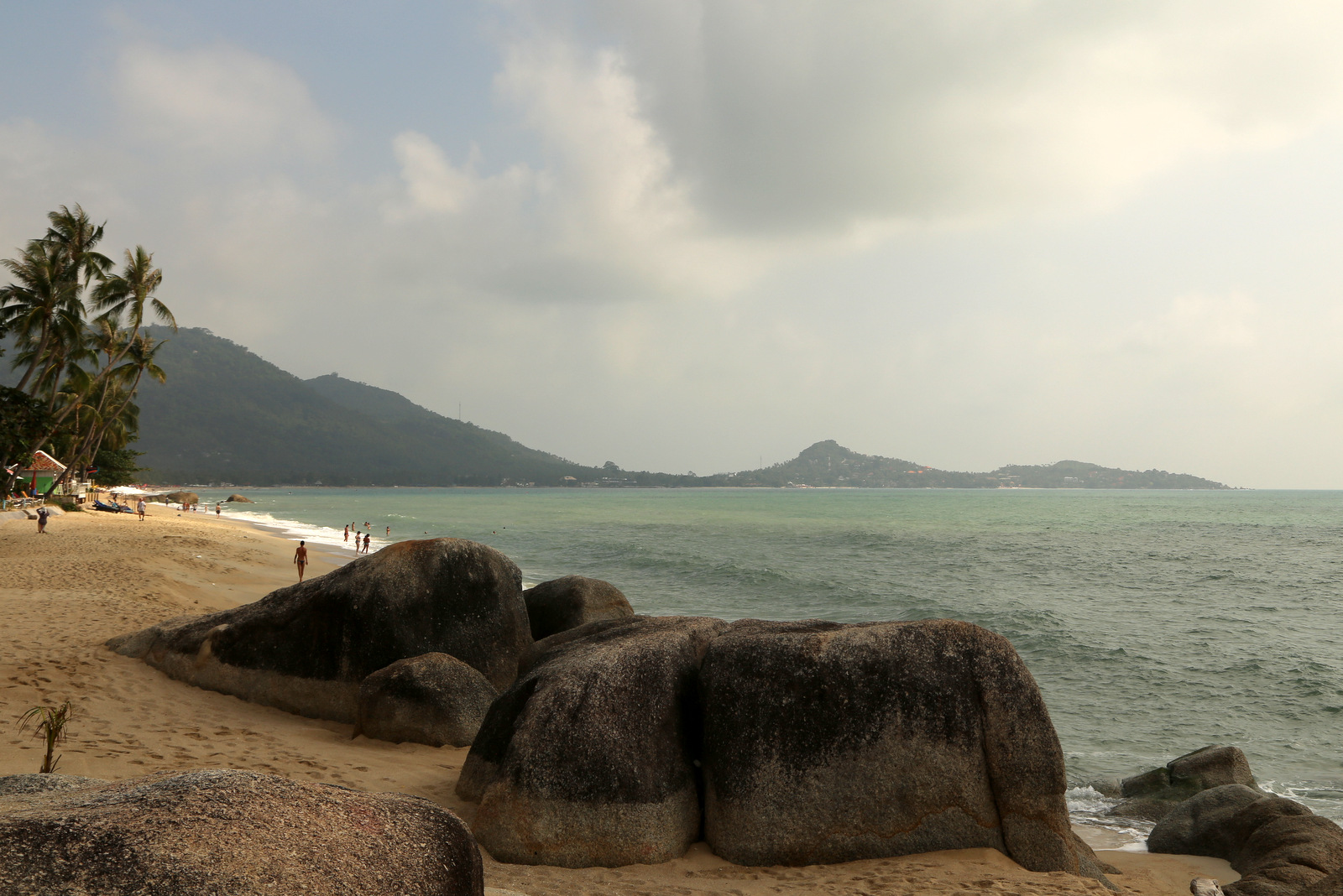 Koh Samui nusileidžiame ankstyvą popietę, po dviejų skrydžių su persėdimu Bankoke. Mažučiame oro uoste ilgai neužtrunkame, ir netrukus jau sėdime taksi, vingiuotu pakrantės keliu vežančiame mus į Lamai. Po 40 minučių pasiekiame savo viešbutį. Jis visai toks, kokį matėme reklaminėse nuotraukose – mažas ir jaukus, įsikūręs prie pat jūros kranto, su mažučiu pliažu ir erdvia terasa, nustatyta patogiai atrodančiais krėslais. Labai karšta, gal kokie 35 laipsniai. Sėdime tiesiai kieme esančioje viešbučio registratūroje, gurkšnojame šviežiai išspaustas tropinių vaisių sultis ir bendraujame su malonia jo savininke. Ji mus patikina, kad viešbutuke yra viskas, ko reikia pilnaverčiam poilsiui ir kad greičiausiai nenorėsime niekur iš čia judėti. (Ji buvo teisi – nenorėjome!) Viešbutis nedidelis (berods, 12 kambarių, jei gerai prisimenu), labai švarus, jaukus ir patogus, ir puikiai tvarkomas. Personalas labai dėmesingas, ir pati savininkė nuolat sukiojasi aplink, bendrauja su svečiais, žiūri, ar ko netrūksta. Dar viena smulkmena – čia nepriimamos šeimos su vaikais. Kai kurie poilsiautojai dėl to pyksta ir skundžiasi diskriminacija, netgi rašo neigiamus atsiliepimus, nes negalėjo čia užsisakyti kambario (tarsi aplink daugiau viešbučių nebūtų), na o mums toks variantas labai tiko.