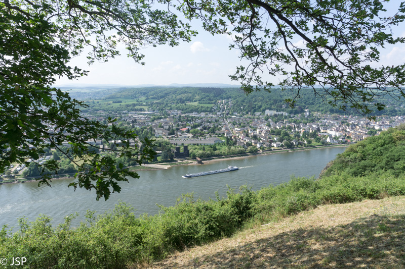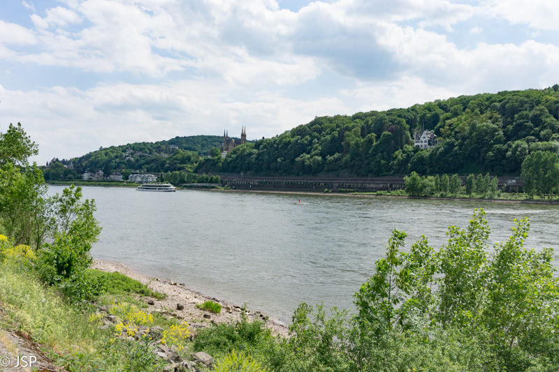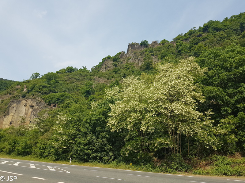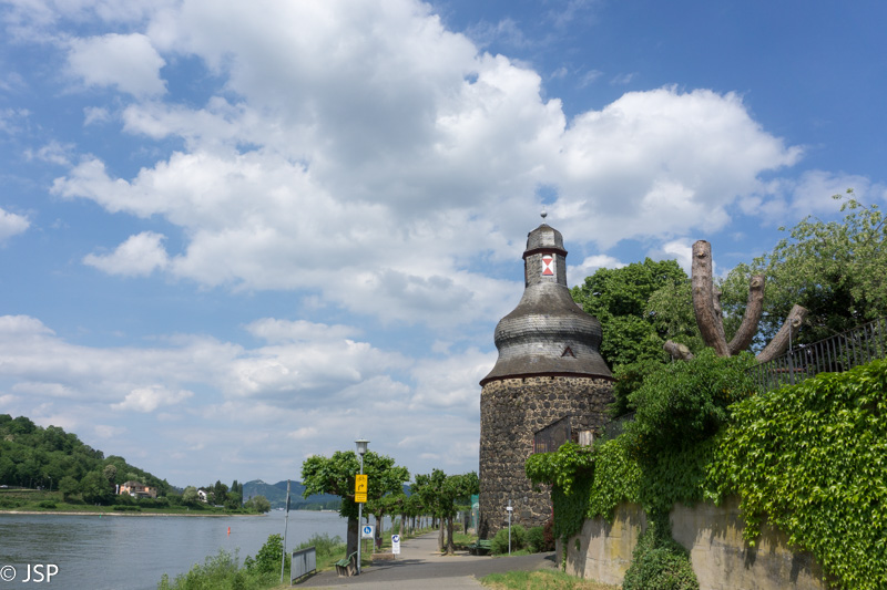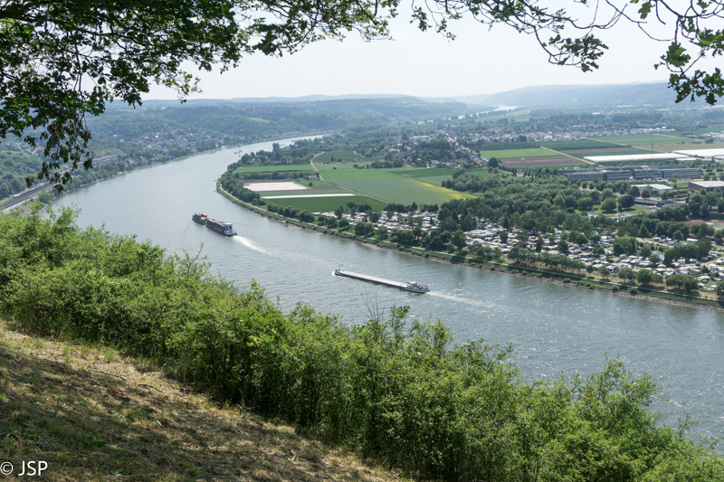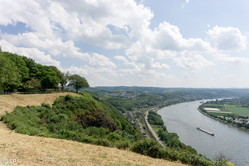 Penktadienį po sočių pusryčių važiuojame į Unkel miestelį, iki jo apie 50 kilometrų, neužtrunkame nė valandos. Miestelį apžiūrėsime vėliau, o dabar einame į žygį – 9 kilometrų ilgio takas nuves mus ant Erpeler Ley skardžio aukštai virš Reino, tuomet žemyn į Erpel miestelį, o tada Reino pakrante grįšime į Unkelį. Trasą išsirinkome Komoot puslapyje. Šį puslapį atradau visai neseniai ir jis man visai patinka, nes trasų daug, gerai veikia paieška ir filtrai; vienintelis trūkumas – nėra išsamių trasų aprašymų (nors kažkaip galima atsisiųsti gps koordinates į telefoną), bet šioje vietoje pagelbsti maps.me programėlė; joje susižymėjus pagrindinius trasos punktus, jokio papildomo žemėlapio ar aprašymo nebereikia.