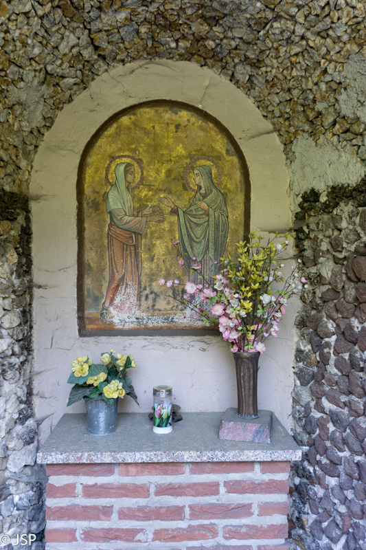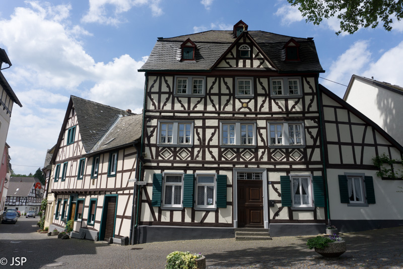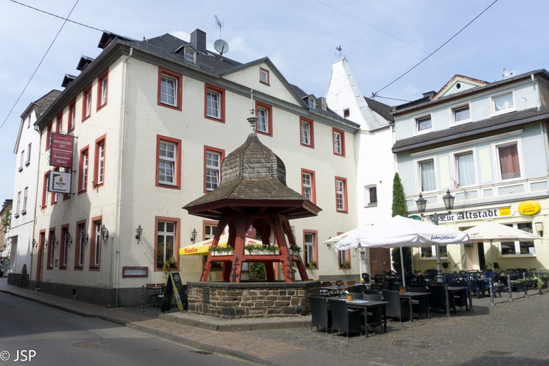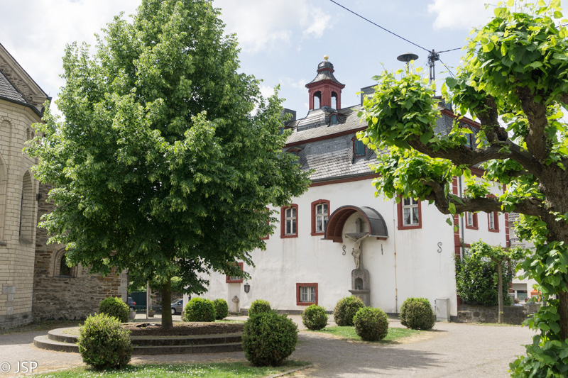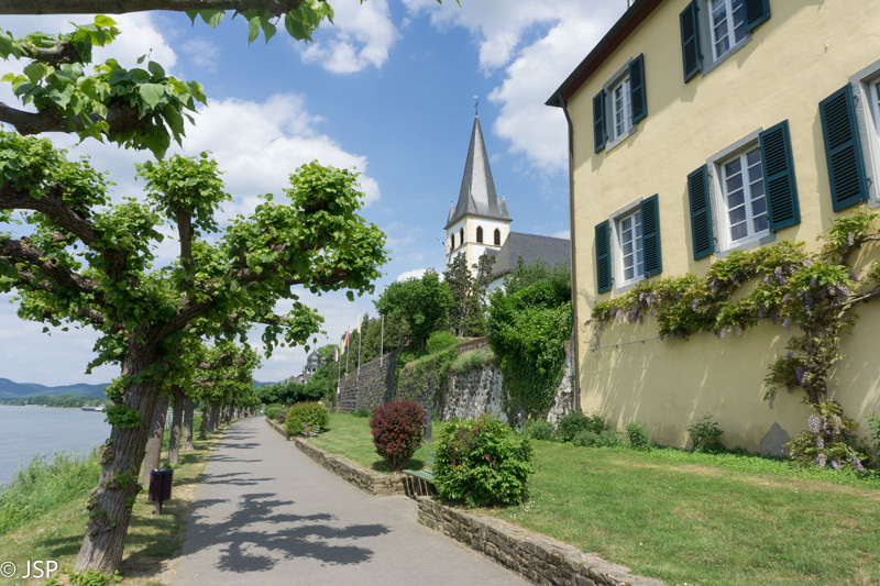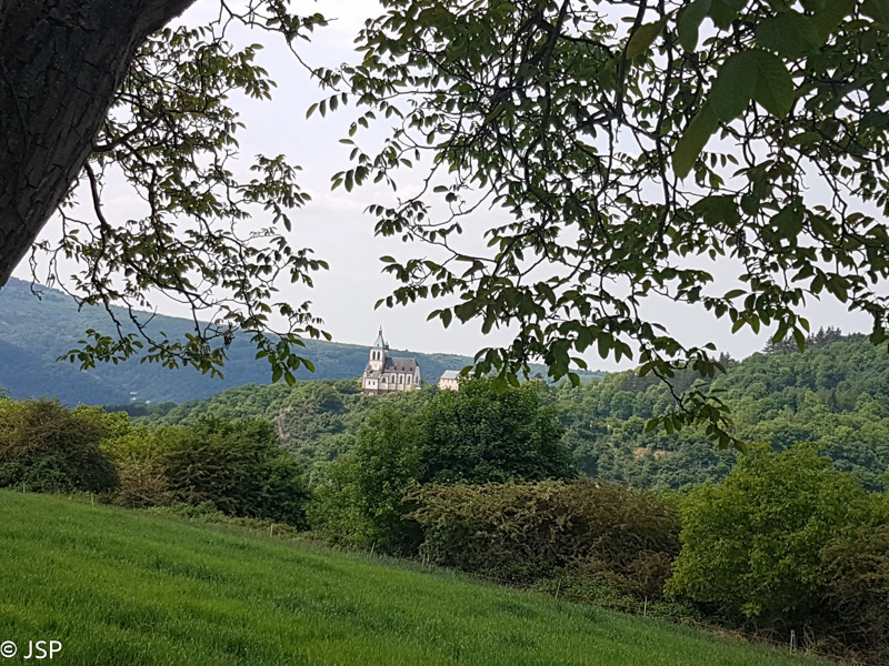 Šeštadienį orų prognozė vėl puiki – bus giedra ir šilta. O mes ir vėl eisime į žygį – tame pačiame Komoot puslapyje susiradome dar vieną vaizdingą trasą. Ji prasideda Lahnstein miestelyje, prie Lahn upės, netoli santakos su Reinu. Pirmoji atkarpa – aukštyn miestelio gatve, pro tvarkingus vokiškus namus su dailiai apkarpytomis gyvatvorėmis ir išpuoselėtais gėlynais. Šioje gatvėje yra ir keletas koplytėlių – taip ir nesupratau, kokia jų paskirtis, lyg panašu į Kalvarijas, bet koplytėlių per mažai tada. Viduje padėta gėlių, dega žvakės.