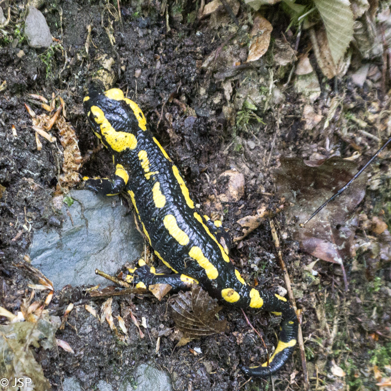 Miške dar ir geltonąją salamandrą sutinkame. Paprastai šiuos vikrius driežų padermės gyvūnus labai sunku nufotografuoti, bet šįsyk salamandra matyt sušalusi buvo ir judėjo gana lėtai, tad spėjau vieną kadrą padaryti.