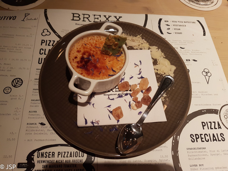 Vakarieniaujame šalia viešbučio esančioje Brexx picerijoje. Jie turi Vera Pizza Napoletana licenziją – tai reiškia, kad pica čia gaminama pagal griežtus neapolietiškus standartus (malkomis kūrenama mūrinė krosnis, tik 00 tipo miltai, San Marzano pomidorai, geriausios kokybės mocarela, tešlos minkymas rankomis, ir t.t.). Pica nenuvilia – labai labai skanu! Beveik kaip Neapolyje. O kadangi pica plonapadė, kaip ir priklauso neapolietiškajai, tai ir desertui dar vietos lieka.