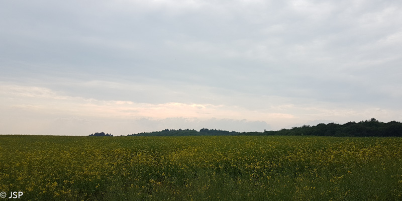 Vakarop išsigiedrija, tad po vakarienės viešbučio restorane (kažkur toliau važiuoti nebuvo noro) dar pasivaikščiojame po apylinkes. Aplink driekiasi rapsų laukai, tarp jų vingiuojantis keliukas visiškai tuščias, tylu ir ramu, kaip būna tik kaime.