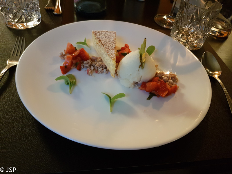 Vakarieniaujame ir vėl viešbučio restorane. Avienos kepsnys labai minkštas ir sultingas (ir kodėl tiek daug žmonių sako nemėgstantys avienos?), o desertas išvis tobulas – braškių salotos, kokosinis pyragaitis ir pina kolada sorbetas; labai nedaug ir labai skanu.