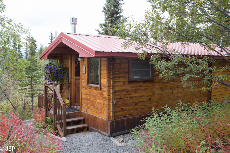 Tundra Rose Guest Cottages – trys trobelės miške, visai šalia Glenn Highway. Mūsų – pati mažiausia. Tai pati romantiškiausia trobelė per visą mūsų kelionę – mažutė, jauki, apsupta tankaus miško, su terasa ir su puikiu vaizdu pro langą. Kelias vos už kelių šimtų metrų, bet iš trobelės jo nei matome, nei girdime (mašinų čia pravažiuoja labai nedaug), kitos trobelės stovi kiek toliau miške, jų irgi nematome. Jaučiamės vieni gamtoje, nors ir žinome, kad tai tik iliuzija. Kita vertus, kelių kilometrų atstumu čia iš tiesų nieko daugiau nėra, tik tos kitos dvi trobelės ir kavinė už pusės kilometro, kurioje gavome raktus.