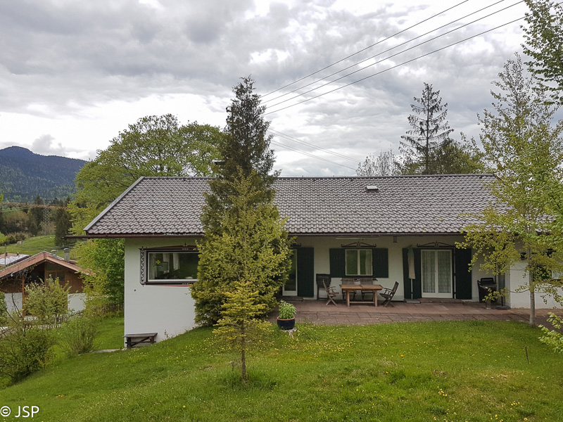 Į Bavariją važiuojame automobiliu iš Olandijos šiaurės. Atstumas nemažas – beveik 900 kilometrų, bet dviese dalijantis vairavimą ir pakeliui sustojus nakvynės Bad Neuenahr, kelionė labai neprailgsta. Tiesa, kaip visuomet, pagalius į ratus kaišioja kelių remonto darbai – dar nė vienas mūsų maršrutas Vokietijoje nėra be jų apsiėjęs, taigi ir šįkart pakeliui buvo ne vienas ir ne trys kelių ar keliolikos kilometrų ilgio „kliūčių ruožai“ greitkelyje, su 80 ar net 60 km greičio limitu. Jie kelionę pailgino beveik valanda. Apniukusią ir vėsią gegužės šeštadienio popietę vingiuotais keliukais per miškus ir slėnius pagaliau pasiekiame mažutį ramų Krün kaimelį vaizdingo kalnų slėnio viduryje. Čia išsinuomojome privatų namuką savaitės trukmės atostogoms. Atvykusius mus pasitinka svetingi šeimininkai, viską aprodo, papasakoja, kur geriau apsipirkti, kur skaniai pavalgyti, ką aplinkui pamatyti. Namukas stovi kaimelio pakraštyje ant nedidelės kalvos, pro langus į visas puses veriasi kalnų vaizdai. Yra visi patogumai, nedidelis sodelis, lauko terasa, kurioje sušilus orui bus galima pasėdėti. Puiki bazė mūsų laukiančiai savaitei!