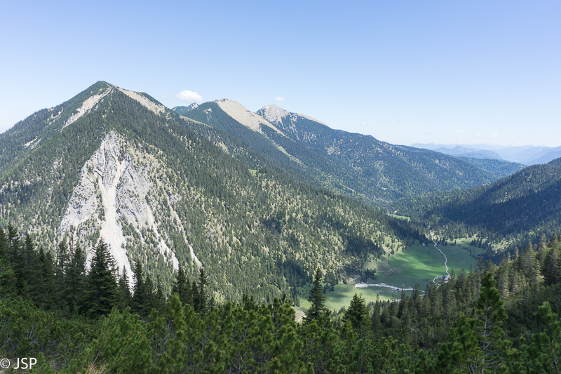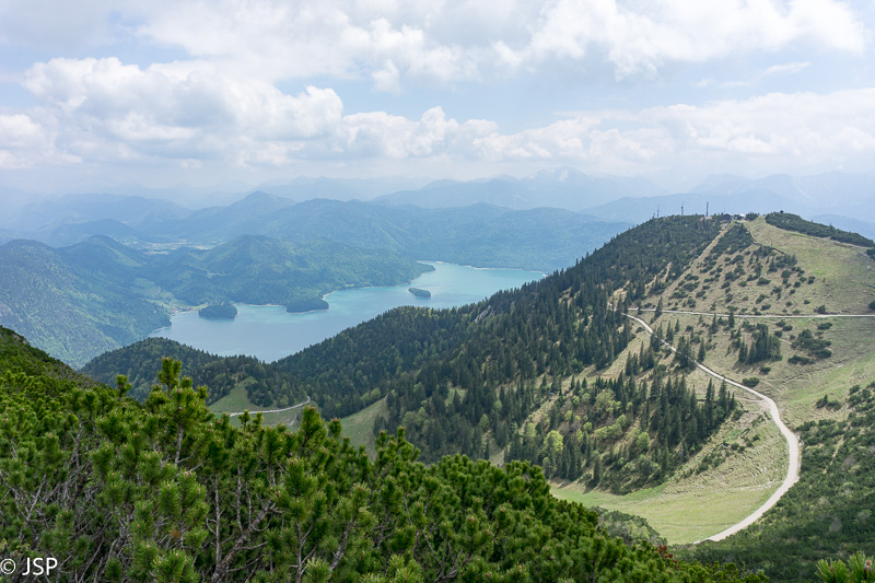 Pakeliui, jau netoli viršūnės – erdvi plokščia aikštelė stataus skardžio viršūnėje. Nuo čia matosi ne tik Walchensee, bet ir kitoje pusėje esantis Kochel ežeras (Kochelsee).