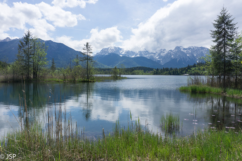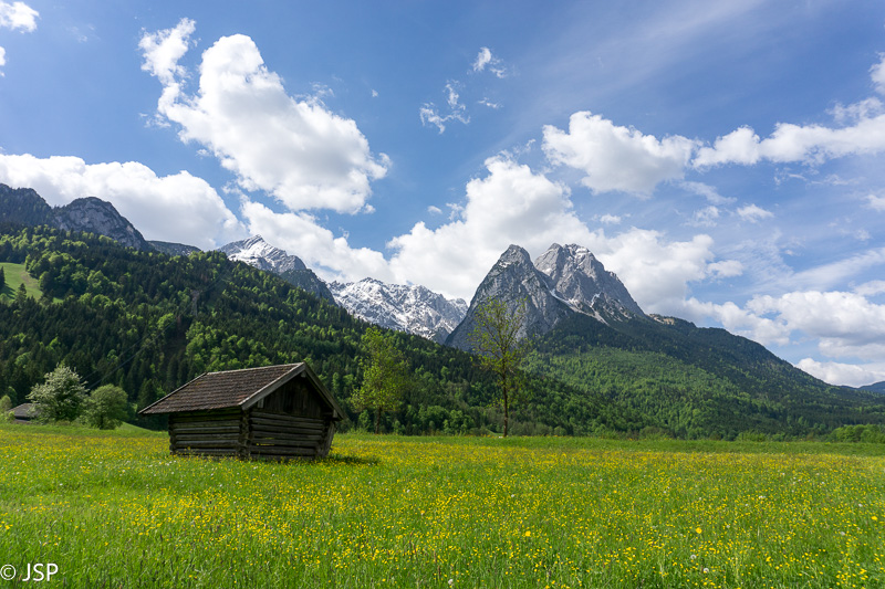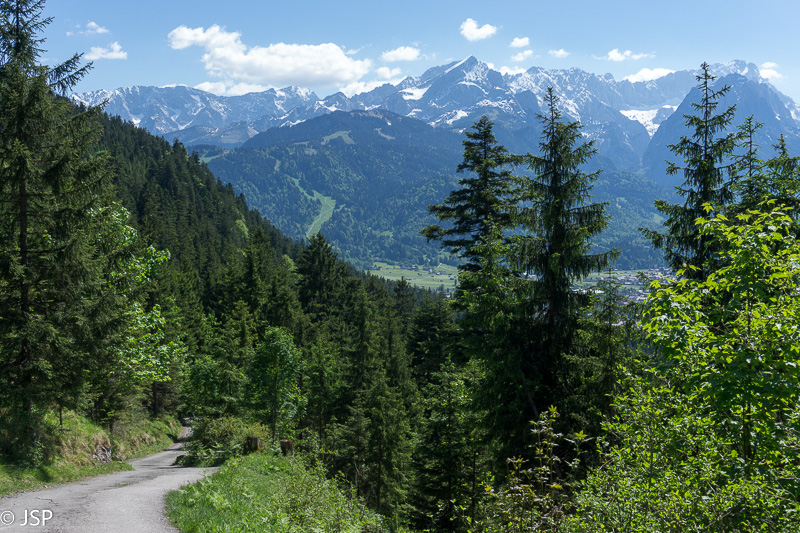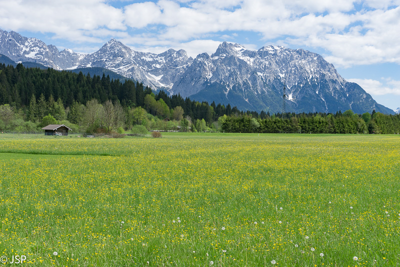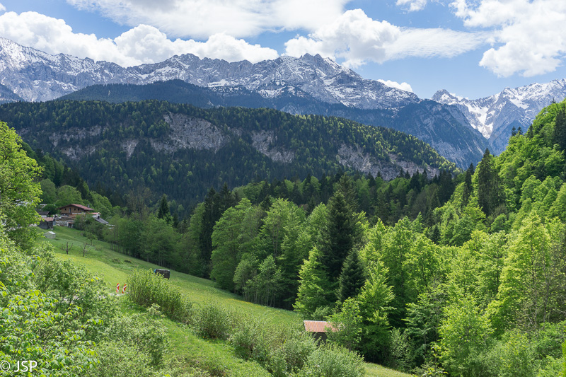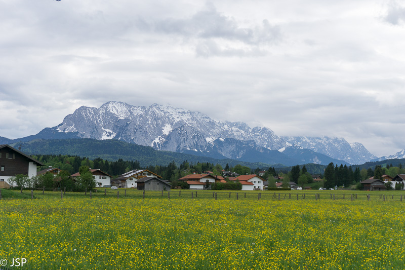 Antradienis. Dar vienas saulėtas rytas, diena irgi žada būti graži. Puiki proga vėl pakilti į kalnus ir pasidairyti po Alpių platybes iš aukštai. Važiuojame į Garmisch ir ieškome nuorodų į Alpspitze keltuvą. Alpspitze – viena gražiausių viršukalnių Bavarijoje, savo trikampiu siluetu dominuojanti Garmisch horizontą. Be to, šalia viršutinės keltuvo stoties yra AlpspiX apžvalgos aikštelė stikliniu dugnu, sumontuota ant stataus kalno šlaito ir pakibusi tiesiai virš bedugnės. Adrenalinas garantuotas, kaip ir puikūs vaizdai tokią giedrą dieną. Deja, šįkart mums ten patekti nelemta – kai atvažiuojame prie keltuvo, parkingas beveik tuščias, o keltuvo stotis apdengta pastoliais. Pasirodo, vyksta keltuvo remontas – internete šios informacijos kažkaip nepamatėme. Uždarytas ir šalia esantis Kreuzeck keltuvas. Nusivylę einame pasivaikščioti keliuku šalia pavasario gėlių pilnos kalnų pievos ir sukurpti plano B. Nusivylimas netrukus išsisklaido – čia labai gražu.