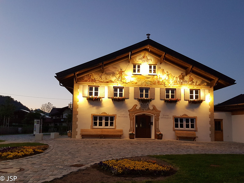 Po vakarienės dar nuvažiuojame prie upės pasigrožėti kalnais, o grįžę apeiname Krün kaimelį. Aptinkame ir vietinį TIC, įsikūrusį tradiciniame bavariškame pastate išpieštomis sienomis. Gaila, kad jo neradome anksčiau – kita vertus, veiklos mums ir taip nepritrūko.