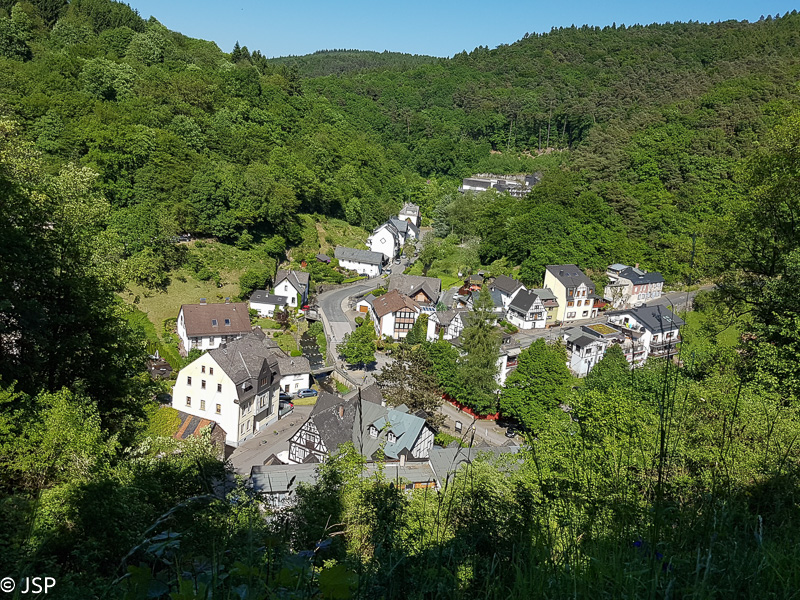 Važiuojame beveik visą dieną, vairuojame pasikeisdami, ir apie ketvirtą popiet pasiekiame Grenzau – netoli nuo greitkelio, kiek į vakarus nuo Koblenz. Jokių planų čia neturėjome, tiesiog reikėjo nakvynės, bet randame gerokai daugiau – simpatišką viešbutį, prigludusį prie aukšto miškingo skardžio, mažulytį jaukų kaimelį su ant kalvos stūksančiais pilies griuvėsiais ir vaizdingą žalią slėnį. Pietinė Vokietija nesiliauja mūsų stebinti – kur bevažiuotum, visur ką nors gražaus rasi! Popietė labai karšta, apie +30, bet vis tiek išeiname pasivaikščioti. Apsukame maždaug 4 kilometrų ratą – nuo viešbučio iki kaimelio, aukštyn iki pilies ir vėl žemyn į slėnį.