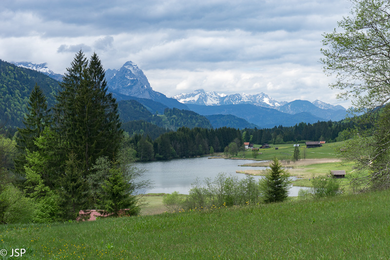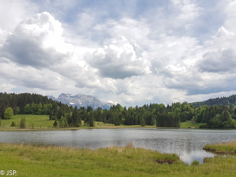 Dar po valandžiukės pasiekiame Geroldsee. Takas šioje atkarpoje labai gražus, vaizdai nuostabūs, aplink daug erdvės ir tyro kalnų oro. Gaila, kad dangų aptraukė debesys ir saulė pasislėpė – spalvos aplink iškart nubluko, papilkėjo. Bet vis tiek labai gražu.