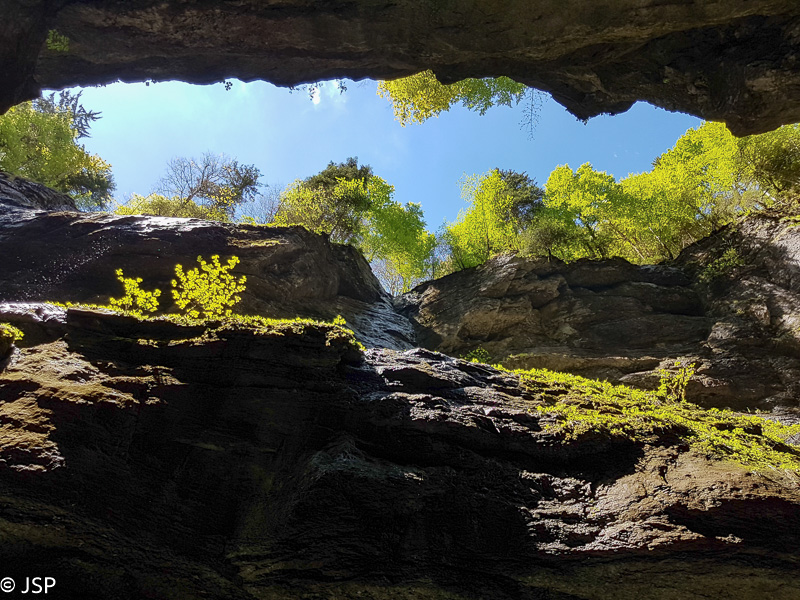 Prie įėjimo nusipirkę bilietą, einame į tarpeklį. Galima eiti specialiai sukonstruotu taku su turėklais palei uolų sieną, o galima rinktis aukštyn vedantį taką, prie kurio parašyta „tik patyrusiems“. Nusistebime, kas čia jau tokio nepaprasto tame take galėtų būti, ir pasižadame sau vėliau jį praeiti. (Deja, neteko, nes prie tarpeklio pradžios nebegrįžome.)