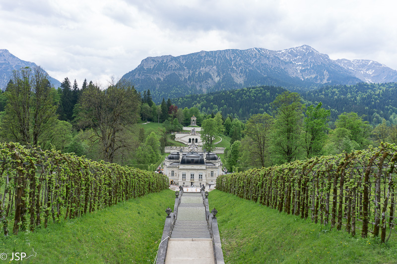 Linderhofas – XIX amžiaus pabaigoje Bavariją valdžiusio Liudviko II pastatyti rūmai, sakoma, nusižiūrėti nuo Versalio. Rūmų vidų galima apžiūrėti tik su organizuota ekskursija, jos vyksta kelis kartus per dieną. Mums netinka ekskursijos laikas, per ilgai tektų jos laukti, tad apžiūrime tik rūmus supantį labai gražų parką. Parko plotas nemažas, bet jis lengvai apeinamas per valandą-dvi. Rūmai stovi parko centre, žemiausioje slėnio vietoje, nuo jų į visas puses terasomis aukštyn driekiasi išpuoselėti sodai.