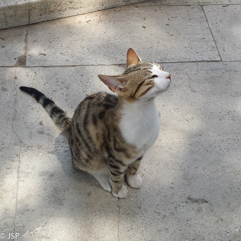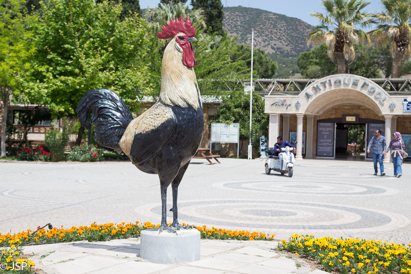 Iki soties prisibraidžioję ir prisifotografavę, einame papietauti į Antique Pool savitarnos kavinę. Staliukai stovi visai šalia Kleopatros baseinėlių. Už 10 lirų galima pasinaudoti unikalia galimybe paplaukioti natūraliai šiltame vandenyje, skalaujančiame antikos laikus menančius griuvėsius. Deja, mes apie tai pamiršome ir nepasiėmėme maudymosi drabužių. Bet nieko, smagu čia ir tiesiog pasėdėti. Ir katinukas kompaniją palaiko – tiesa, tik tol, kol pasibaigia mėsa mano lėkštėje.