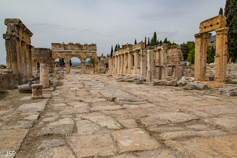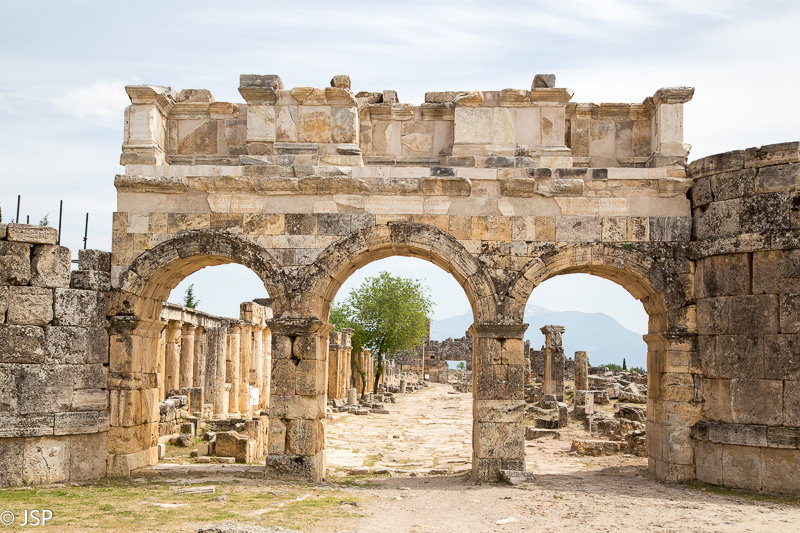 Kita diena skirta Pamukalei. Be to, dar ir mano gimtadienis. Dovaną jau gavau – kelionę į Turkiją, belieka kažkaip susiorganizuoti gimtadienio torčiuką, nes na kaipgi be jo? Pamukalę pasiekiame per maždaug 20 minučių. Prie įėjimo būriuojasi turistų grupės, bet žmonių palyginus nedaug – jaučiasi, kad turizmas Turkijoje šiemet kenčia. Įėję pro vartus, atsiduriame Hierapolio miesto griuvėsiuose.
