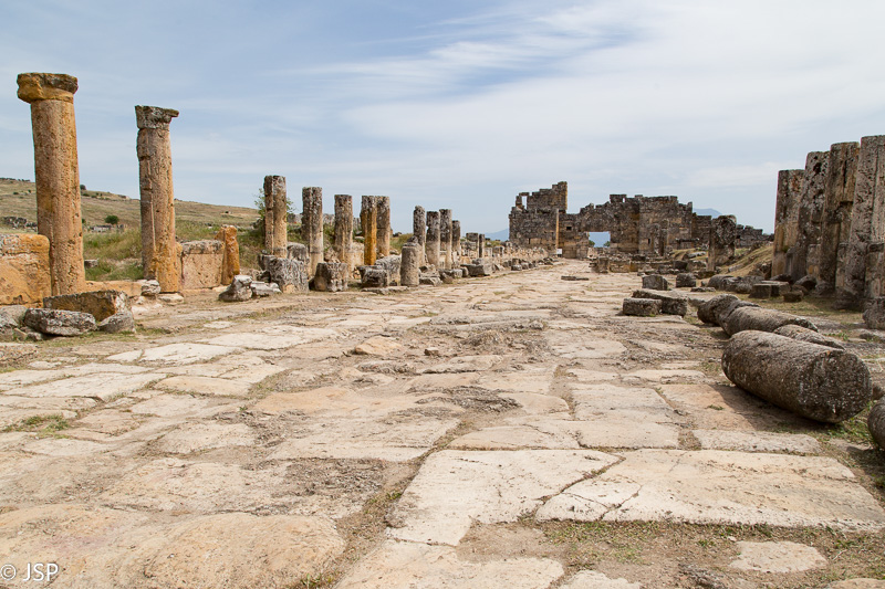 Po pietų einame apžiūrėti Hierapolio – antikinio miesto Pamukalės kalvos viršūnėje. Skardžio pakraščiu palei travertinas ir didžiulį senovinių pirčių kompleksą nueiname beveik iki tolimojo Hierapolio pakraščio. Miestas prie karštųjų versmių įsikūrė dar antrajame amžiuje prieš mūsų erą. Čia būta babiloniečių, Romos ir Bizantijos imperatorių, persų ir seldžiukų užkariautojų. Galutinai miestą sugriovė 1354 metais įvykęs žemės drebėjimas. Rimtesni kasinėjimai ir restauracijos darbai prasidėjo tik XX amžiaus viduryje.