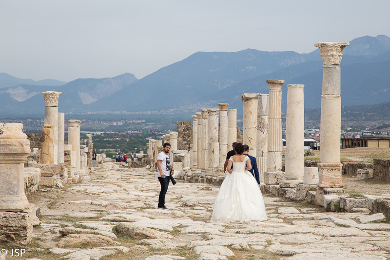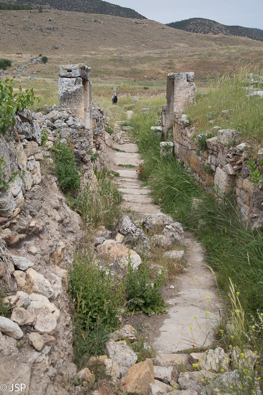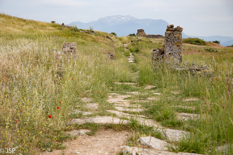 Pro kolonomis paremtus vartus išėję iš miesto, per aukštą žolę vingiuojančiu takeliu einame iki amfiteatro kitoje kalvos pusėje (čia jau randame nemažai žmonių) ir vis negalime atsistebėti puikiu Hierapolio siurprizu. Kartais visai gerai iš anksto per daug nepasidomėti, kas tavęs laukia vienoje ar kitoje vietoje.