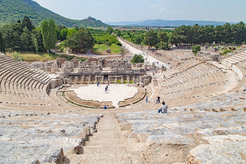 Netoli bibliotekos plati gatvė veda iki Efeso amfiteatro. Jis didžiulis – sakoma, buvęs vienas didžiausių antikiniame pasaulyje.