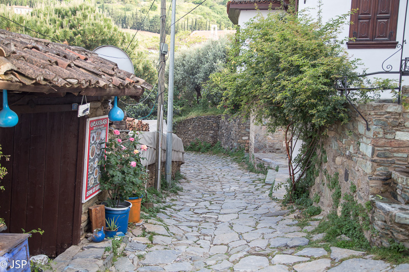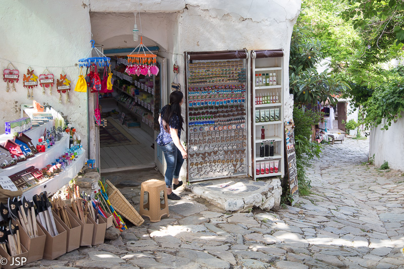 Iš Efeso siauru kalnų keliuku važiuojame į netolimą Sirinčės kaimelį, garsėjantį savo jaukumu ir gražiais vaizdais. Atvažiavę vos randame kur pastatyti mašiną, o siaurose kaimo gatvelėse pilna turistų, vietomis net praeiti sunku. Kur tik pažvelgsi, visur suvenyrų parduotuvės ir kavinės. Ne visai to tikėjomės, bet kad jau atvažiavome, tai einame pasidairyti.