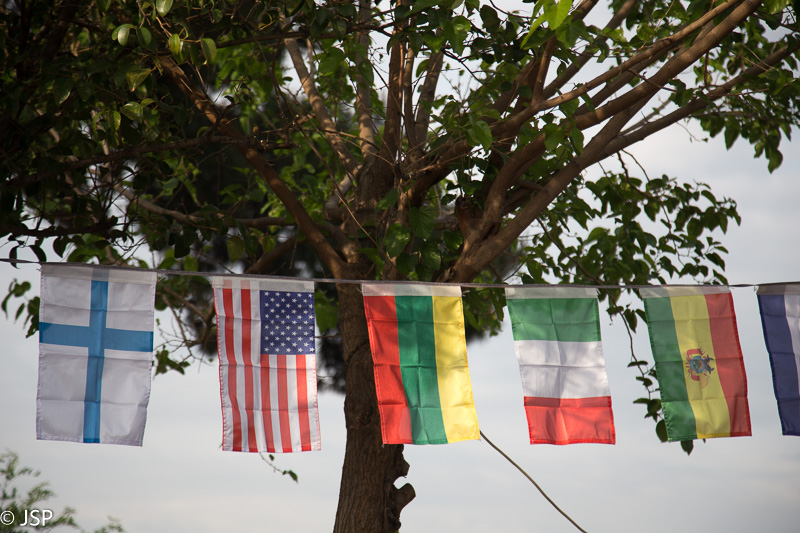 Grįždami prie mašinos, užmatome pakelėje ant virvės sukabintas įvairių šalių vėliavėles, tarp jų ir lietuvišką.