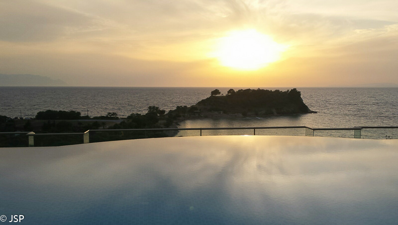 Šios dienos nakvynė – Kušadasi kurorte jūros pakrantėje. Kurortas nesužavi – per daug žmonių, per daug mašinų, per daug didžiulių viešbučių. Bet mūsų viešbutukas stovi už poros kilometrų nuo miesto, čia tylu ir ramu. Ir dar čia yra nuostabus infinity pool („beribis baseinas“, sukonstruotas taip, kad nesimato tolimojo jo krašto), kuriame atsispindi besileidžianti saulė. Prisėdame bare prie baseino su balto vyno taure ir gėrimės saulėlydžiu.